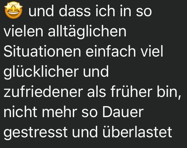 Keine Verbote. Kein Zwang. Du bekommst Werkzeuge, wie du durchatmen, innehalten und bewusst neue Entscheidungen treffen kannst – jeden Tag ein bisschen mehr du selbst.