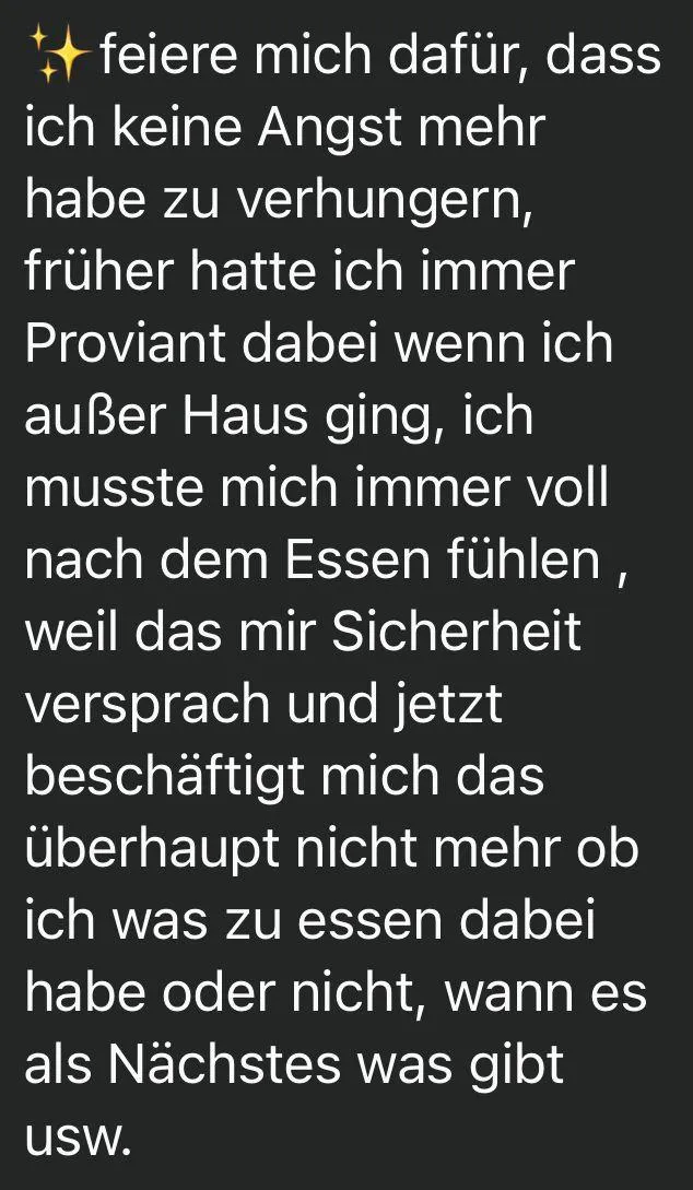 Ich habe gegessen, obwohl ich keinen Hunger hatte. Ich stand jeden Tag mit schlechtem Gewissen auf und ging mit Frust ins Bett. Mein Körper fühlte sich fremd an, schwer, irgendwie falsch. Ich war ständig im Kampf – gegen mich selbst, gegen meinen Hunger, gegen meinen Spiegel.