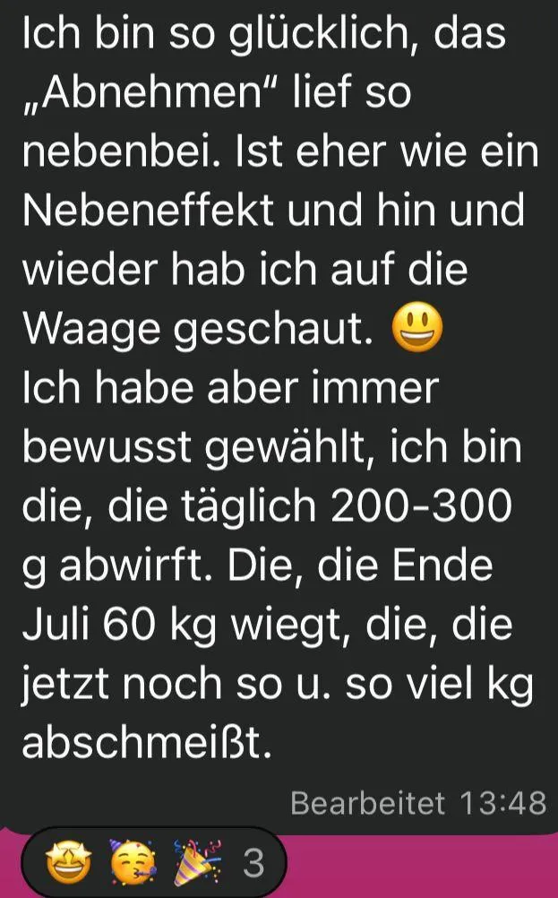 Weil das keine Diät ist. Du musst nichts wiegen, nichts zählen, nichts verbieten. Du bekommst Werkzeuge, um dich selbst zu verstehen – und dein Essverhalten verändert sich von innen heraus.